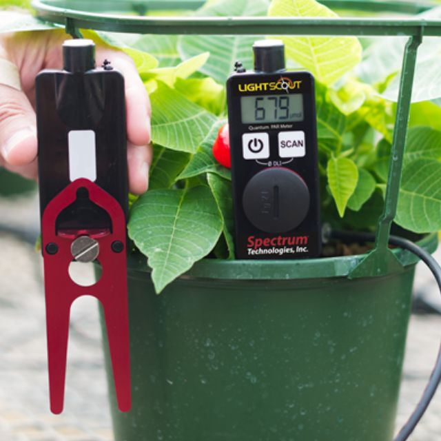The LightScout Quantum (PAR)/DLI Meter provides scientifically accurate PAR light readings under any light source, including LED. Set out for 24 hours to compute and display DLI. Three modes of operation: Instant Spot Measurement for PAR light readings, Scan Mode for quickly averaging PAR over an area, and DLI Mode shows Daily Light Integral on the LCD. Includes integral mounting plate for stand, stake, lanyard and hanger hole and magnet mounts. 1/4"-20 threaded hole for mounting on camera tripods and stands. Includes sensor cover and soft carrying case.